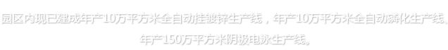 特點: PLC全自動控制,故障自動解析報警,過程參數(shù)自動顯示及記錄,全自動安全防護,在線自動吹水/烘干。鹽霧能力、附著力、耐沖擊、耐彎曲性等性能國內領先。 產能: 10萬平方米/年